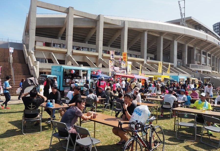 Enjoy food trucks, inflatable play areas for kids, and live music at the family-friendly Yaeshima Kitchen Car Festival. Fun for all!