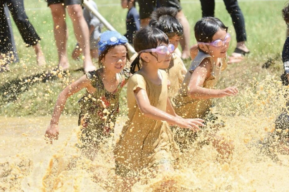 Kin Town Rice Field Festival 2025 features mud play, water buffalo rides, canoeing, SUP, crafts, nature tours, beetle classes, and Anpanman shows.
