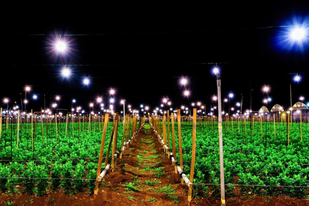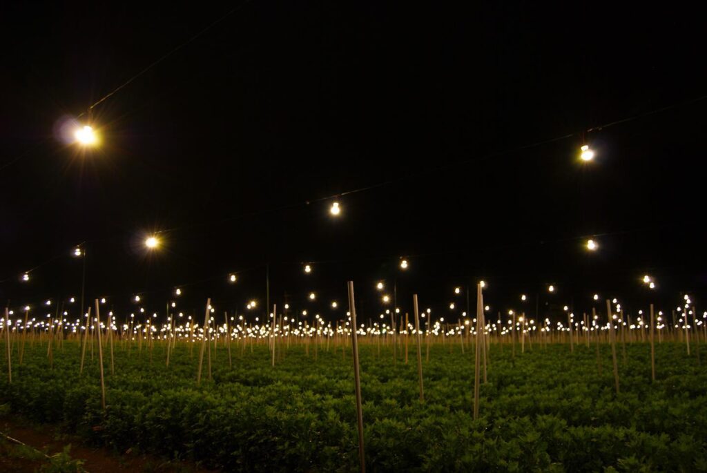 By bathing the fields in artificial light all night, they essentially whisper, “Shh, it’s still daytime, darling, keep that bud tight!”