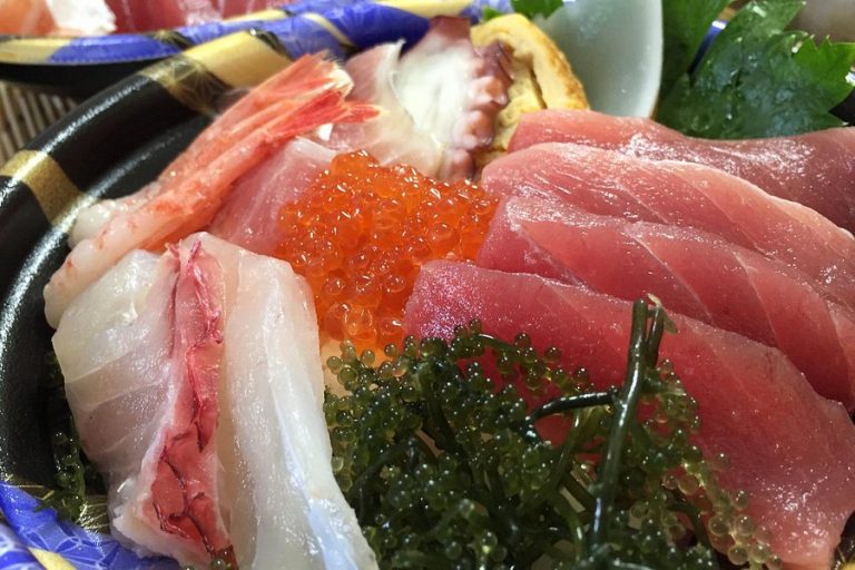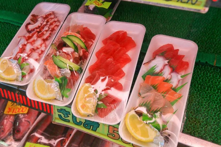 Walk toward the port and you’ll smell it before you see it. Imaiyu Market (いまいゆ市場) and the seafood restaurant beside it sell the day’s catch — sashimi, seafood rice bowls, more tempura. Locals sit shoulder to shoulder with visitors, chopsticks clattering, beer bottles sweating in the heat. It’s not fancy, but it’s real.