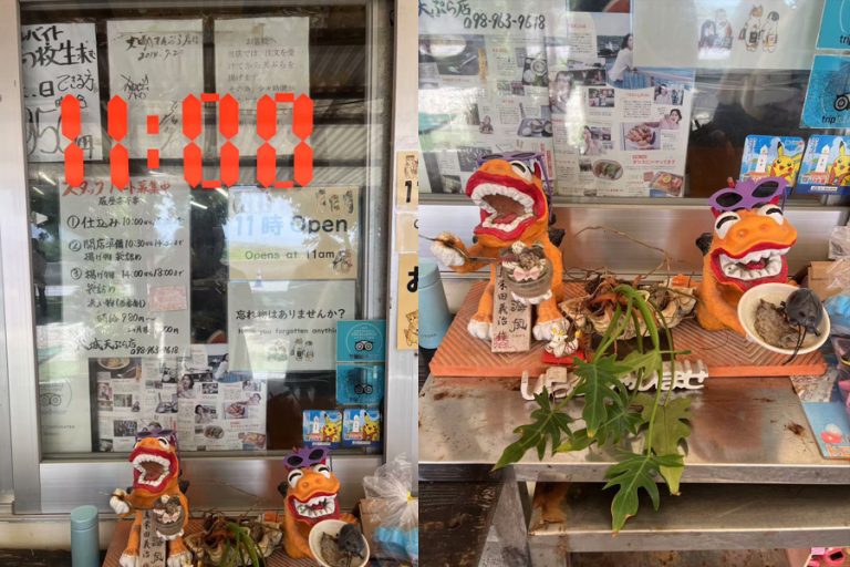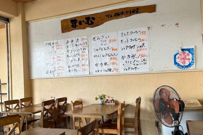 Just down the road, shaded by a giant banyan tree, sits Maimu. It’s half beach shack, half community hangout. Order Okinawa soba, taco rice, or shaved ice. Grab a drink, sit in the shade, and let the cats take their shift as unofficial hosts. This is where the island exhales.